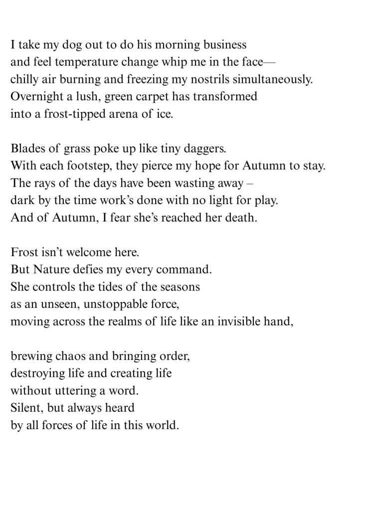 You may also enjoy another of my poems about the changing seasons, “Frost of the Field” or you can find all of my poems on nature HERE